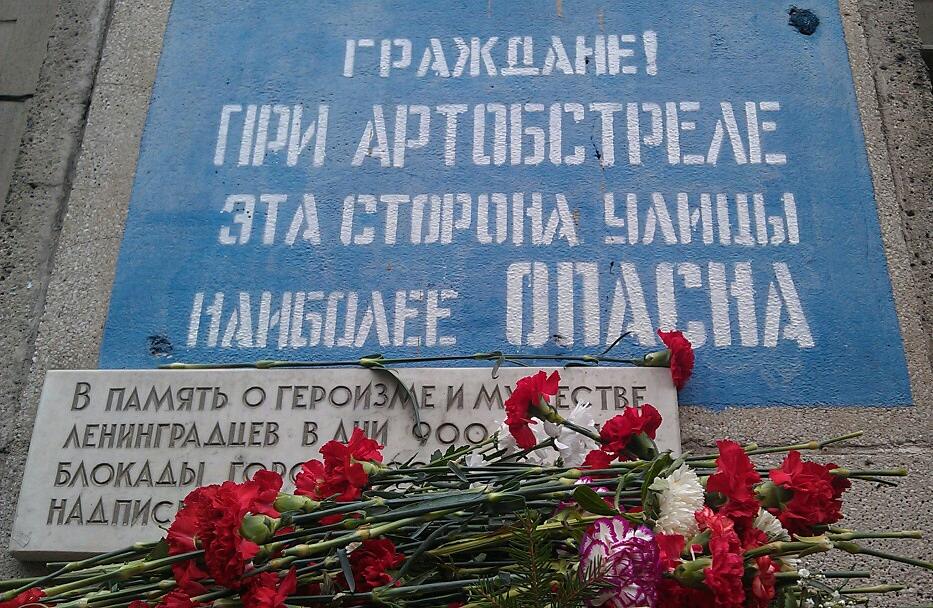 Коммунисты и комсомольцы Центрального районного отделения провели возложение цветов у дома №14 по Невскому проспекту, на котором, как напоминание о страшных днях, которые пережил город, сохранилась табличка «Граждане! При артобстреле эта сторона улицы наиболее опасна».