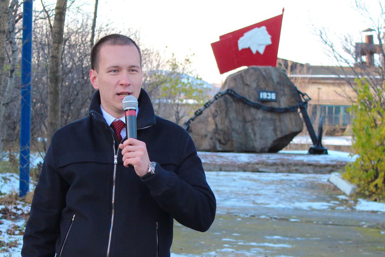 Открыл митинг директор завода С.П. Смирнов. В своём выступлении он обратил внимание на преемственность поколений, сохранение исторической памяти и необходимость уважения к советскому прошлому. Он отметил, что «Филиал "35 СРЗ" АО "ЦС "Звездочка" в течение 79 лет выполняет комплексные ремонты кораблей и судов ВМФ. Завод имеет славную и насыщенную историю: под непрекращающимися бомбардировками он героически перевыполнял план в Великую Отечественную Войну и в последующем на высшем уровне обеспечивал боеготовность Краснознамённого Северного флота».