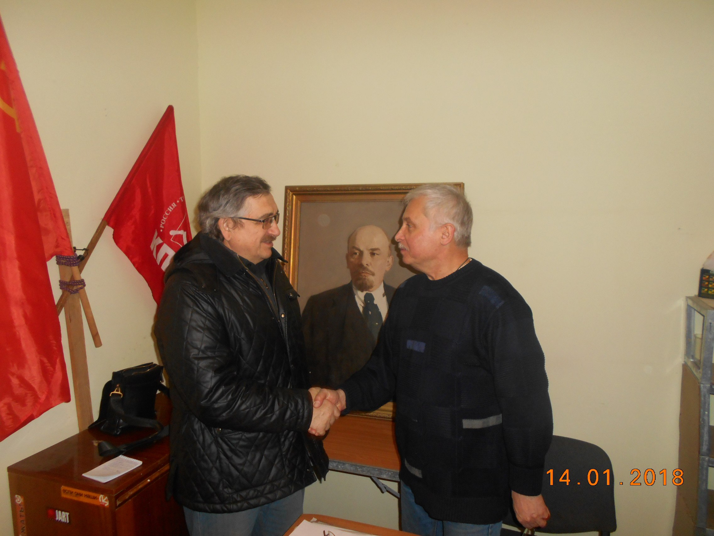 14 января коммунисты первичной организации КПРФ «Южно-Приморская» Красносельского района провели плановое собрание, в ходе которого приняли в члены партии ветерана Кировского завода тов. В.Н. Миронова.