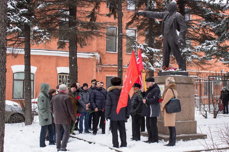 Памятные митинги и возложение цветов состоялись у памятника Ильичу в Красногвардейском переулке и у восстановленной коммунистами Приморского района мемориальной доски на Сердобольской улице.