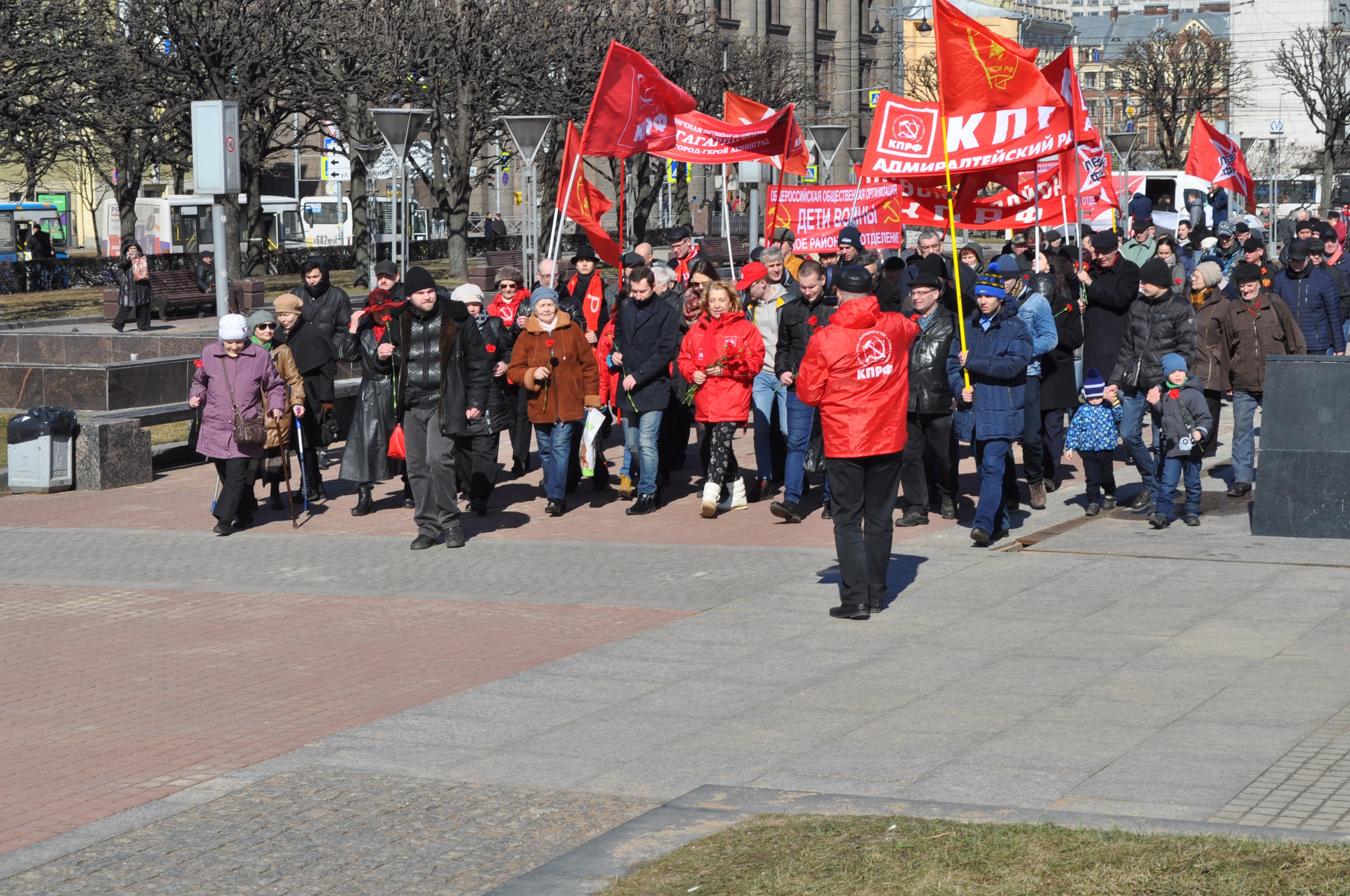 7 апреля 2018 года на площади Ленина в городе на Неве состоялся митинг протеста против общего ухудшения жизни трудящихся, увеличения налогов, пенсионного возраста, постоянного роста цен, организованный Санкт-Петербургским городским отделением КПРФ.
