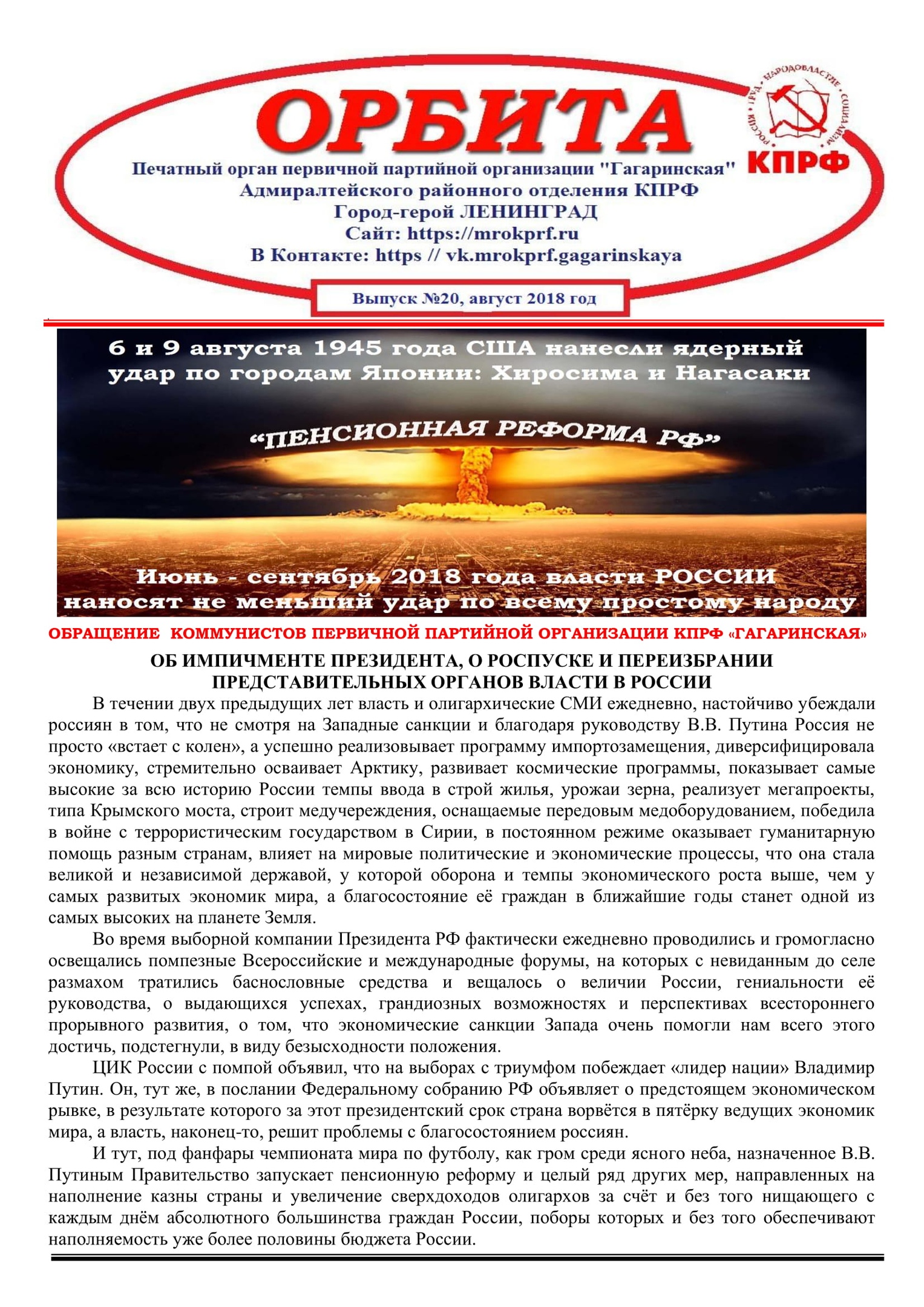 Предлагаем вам ознакомиться с агитационными материалами, выпущенными двумя первичными партийными организациями – первичным отделением №2 «Юго-Запад» Красносельского районного отделения КПРФ и первичным отделением «Гагаринская» Адмиралтейского районного отделения партии.
