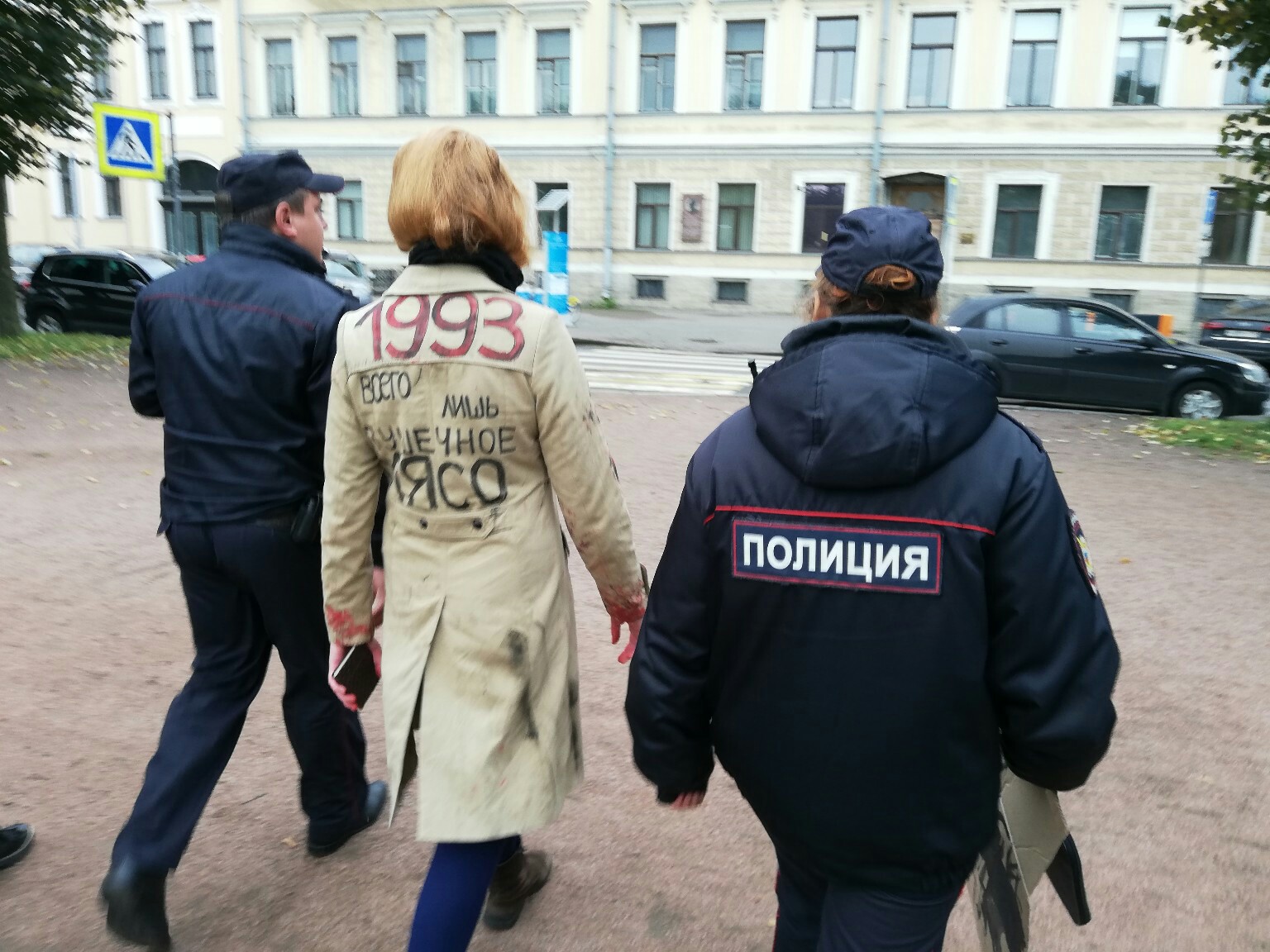 Когда возложение цветов уже завершилось, сотрудники полиции задержали девушку, которая проводила одиночный пикет в память о событиях 1993 года на некотором удалении от вечного огня. Без предъявления обвинений участницу одиночного пикета, активистку Санкт-Петербургского отделения ЛКСМ РФ Элину Дуняшеву препроводили к полицейской машине, после чего предприняли попытку доставить девушку в 78 отдел полиции. После вмешательства руководителя фракции КПРФ в Законодательном Собрании Санкт-Петербурга О.А. Ходуновой, выступившей против полицейского произвола, девушка была отпущена на свободу.