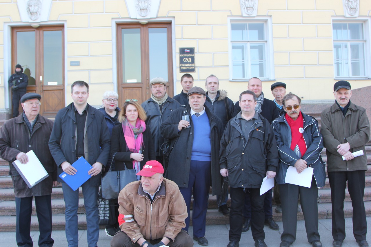 Коммунисты собирались у Медного всадника с 12 часов дня. Каждому пришедшему раздавали идентичные тексты обращения в Конституционный суд РФ. Подписавшиеся под этим документом выражали свое несогласие с позицией председателя КС Валерия Зорькина, отказавшегося рассматривать запрос группы депутатов Госдумы о повышении пенсионного возраста. Парламентарии просили проверить соответствие закона о «пенсионной реформе» Конституции. В статье 55 основного закона страны есть положение о том, что принимаемые нормативные акты не должны «отменять или умалять права и свободы» граждан. Повышение пенсионного возраста, против которого, согласно соцопросам, выступало подавляющее большинство россиян, нарушило этот пункт, посчитали депутаты. Однако КС решил иначе и постановил, что повышение возраста выхода на пенсию – прерогатива законодательной власти и нечего тут проверять.