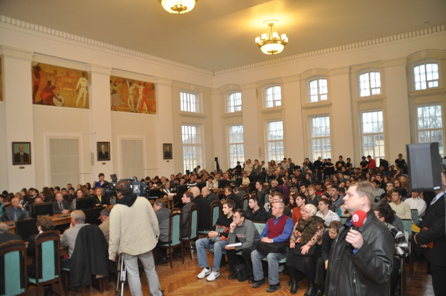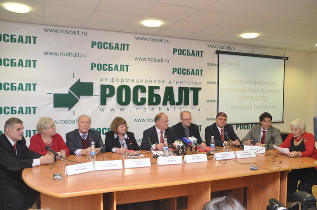 Визит Г.А. Зюганова в город на Неве начался с пресс-конференции в информационном агентстве «Росбалт». Она вызвала огромный интерес у представителей СМИ – зал, где проводился брифинг, был переполнен.